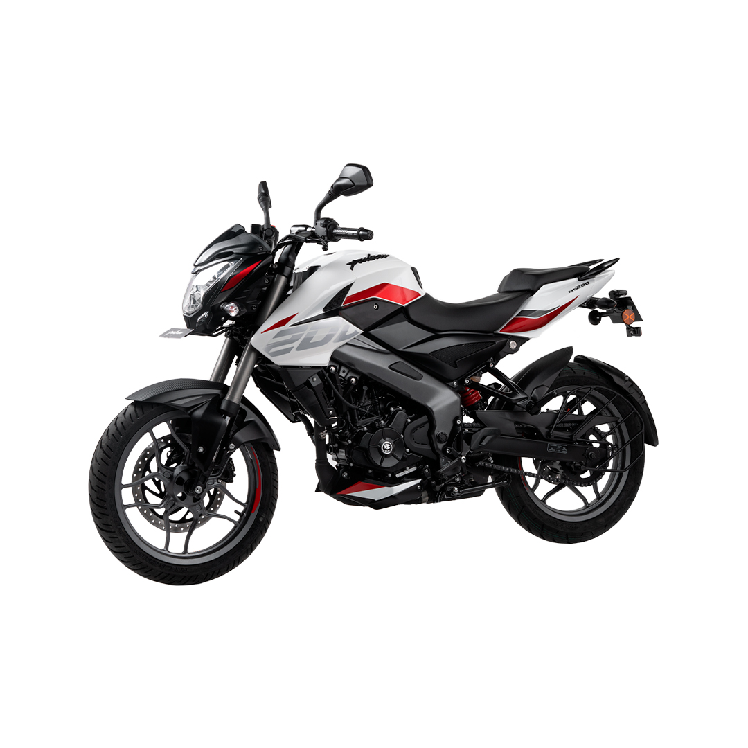 La suspensión delantera USD de 33 mm mejora la estabilidad y el control, especialmente en curvas o caminos irregulares. En la parte trasera, su mono suspensión Nitrox ofrece un manejo más suave y firme, ideal para trayectos urbanos y carreteras con variaciones en el terreno. En cuanto a seguridad, la Bajaj Pulsar NS200 UG incorpora frenos de disco en ambas ruedas: 300 mm adelante y 230 mm atrás, lo que permite frenadas precisas y controladas en cualquier situación. Sus llantas sin cámara —100/80-17 adelante y 130/70-17 atrás— brindan un excelente agarre y estabilidad.