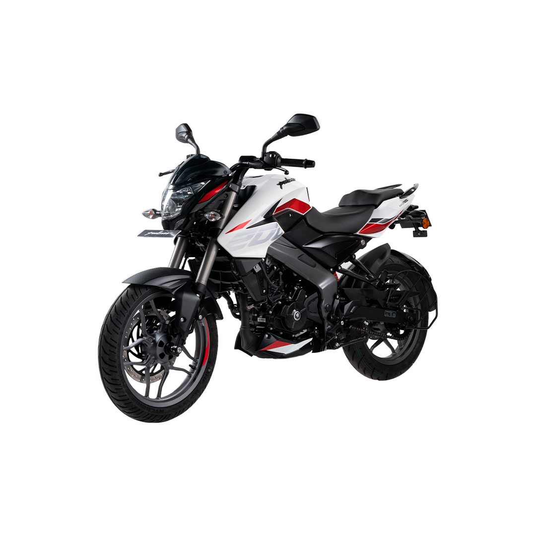 La Bajaj Pulsar NS200 UG es una motocicleta pensada para quienes buscan una moto deportiva con carácter, potencia y un diseño que destaque desde cualquier ángulo. Su estética agresiva, líneas marcadas y postura imponente la convierten en una opción ideal para quienes quieren una moto moderna y con presencia. El faro delantero y los detalles del carenado refuerzan su estilo deportivo sin sacrificar comodidad.